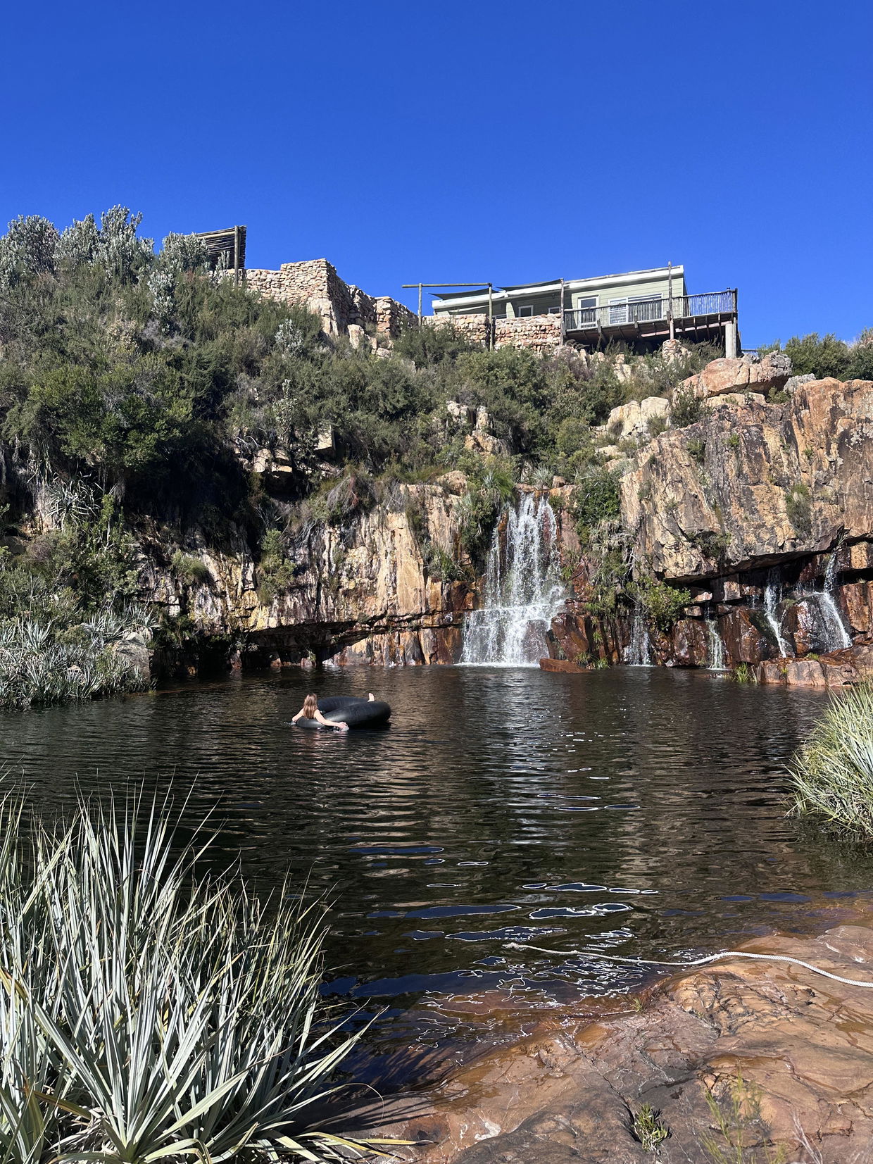 Red Fin Cottage in Koue Bokkeveld is where true tranquillity meets raw nature. This secluded mountain escape with breathtaking views over a natural waterfall is perfect for unwinding far from the city's hustle and bustle. Spend your summer days exploring hiking trails and taking leisurely dips in refreshing mountain rock pools. As the sun sets, light the braai and enjoy an evening under a golden sky that gives way to dazzling starlit nights.