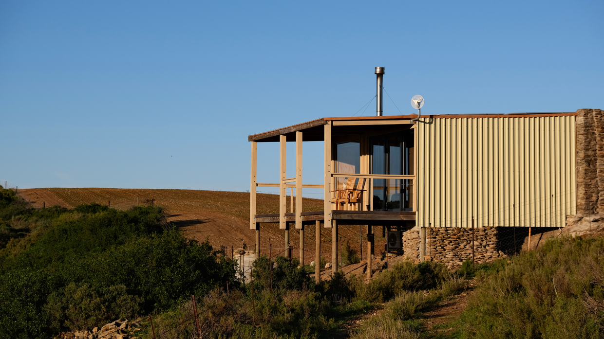 Unwind in serene sophistication at Wheat Cabin, a secluded, stylish escape located on the tranquil slopes of Porceleinberg near Malmesbury. This cabin operates entirely off-grid, offering a true break from the everyday bustle. Step onto the porch to behold a sweeping 180º panorama of the valley. The wooden deck features a cargo net perfect for lounging, while the protected rear boasts a wood-fired hot tub and braai area. With nature walks right on your doorstep and a well-equipped kitchen, it’s the perfect self-catering retreat with stunning views and sunsets.