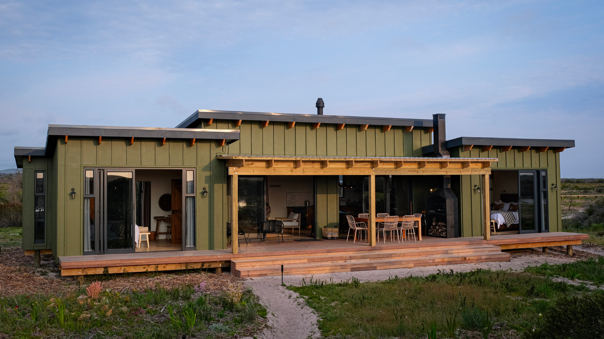 The Fynbos Cabins in Yzerfontein offer a refined take on West Coast simplicity, where wood and stone architecture blends seamlessly into the natural landscape. Floor-to-ceiling glass and wide sliding doors frame uninterrupted views of the Cape’s iconic floral fynbos, creating a tranquil connection between indoors and out. Each of the six cabins features a private deck with a built-in braai and a wood-fired hot tub; the ultimate spot to unwind beneath a star-filled sky. With scenic hiking and mountain biking trails just moments away, these cabins provide the ideal sanctuary for those seeking peace, privacy, and the raw beauty of the West Coast wilderness.