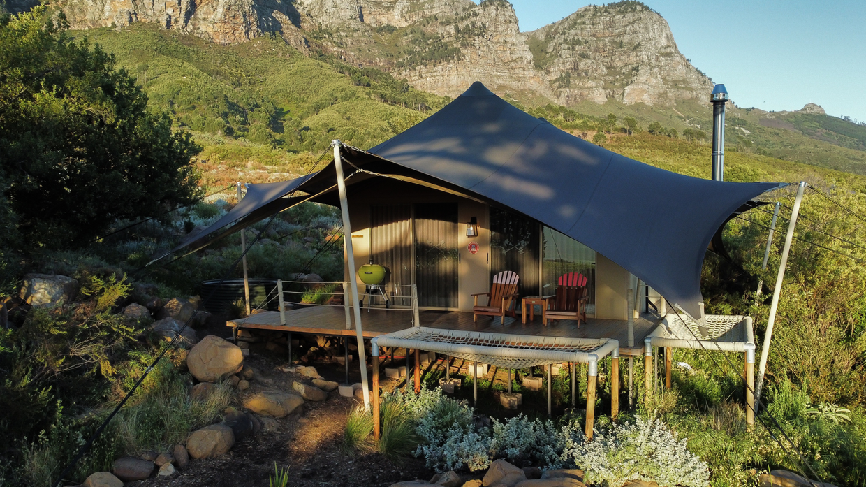 Camp Canoe redefines luxury glamping, set high on a secluded hillside overlooking a tranquil dam on the renowned Boschendal Wine Estate in Franschhoek. Each of the seven tents combines contemporary style with rustic charm, offering everything you need to fully unwind. Enjoy complete privacy and panoramic views from your private deck, featuring a net hammock, braai, and a soothing wood-fired hot tub. Inside, cosy up beside the indoor fireplace or step outside for a refreshing swim or peaceful paddle on the dam. This is where nature, comfort, and quiet luxury come together.