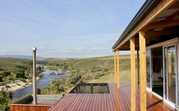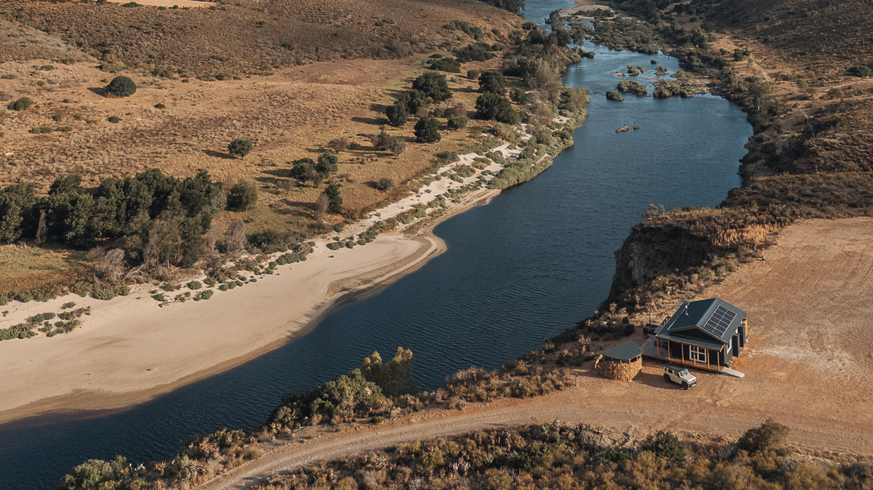 Stay @ Napky is a breathtaking, secluded cabin perched above the Breede River in Swellendam, offering an unforgettable setting for a family retreat. A standout feature is the cargo net suspended over the deck, where older toddlers can safely play or nap while parents unwind. Enjoy the wood-fired hot tub as you soak in magnificent river and mountain views. Evenings are magical, with a boma/braai area perfect for shared meals beneath the stars. Direct river access and a complimentary kayak make adventures effortless, while the fully equipped kitchen and spacious deck ensure complete comfort throughout your stay.