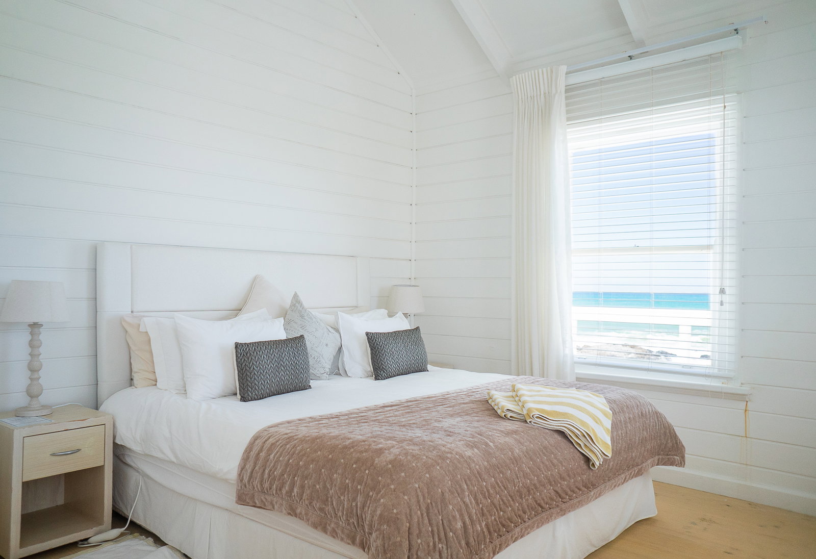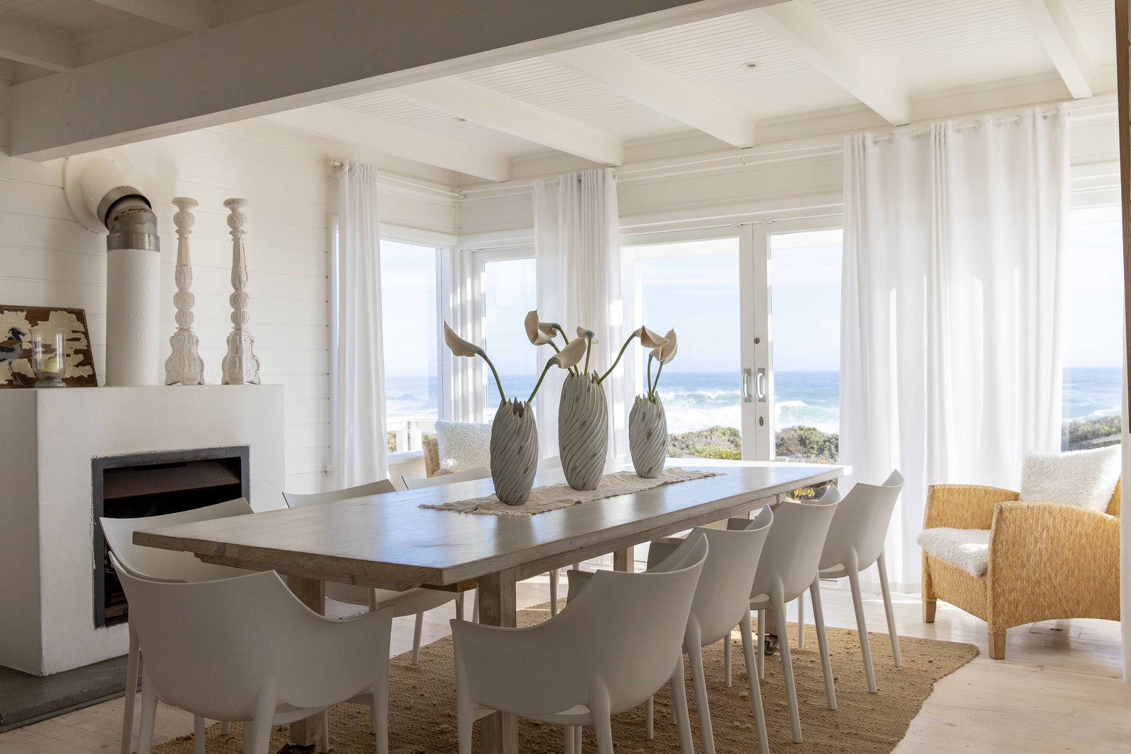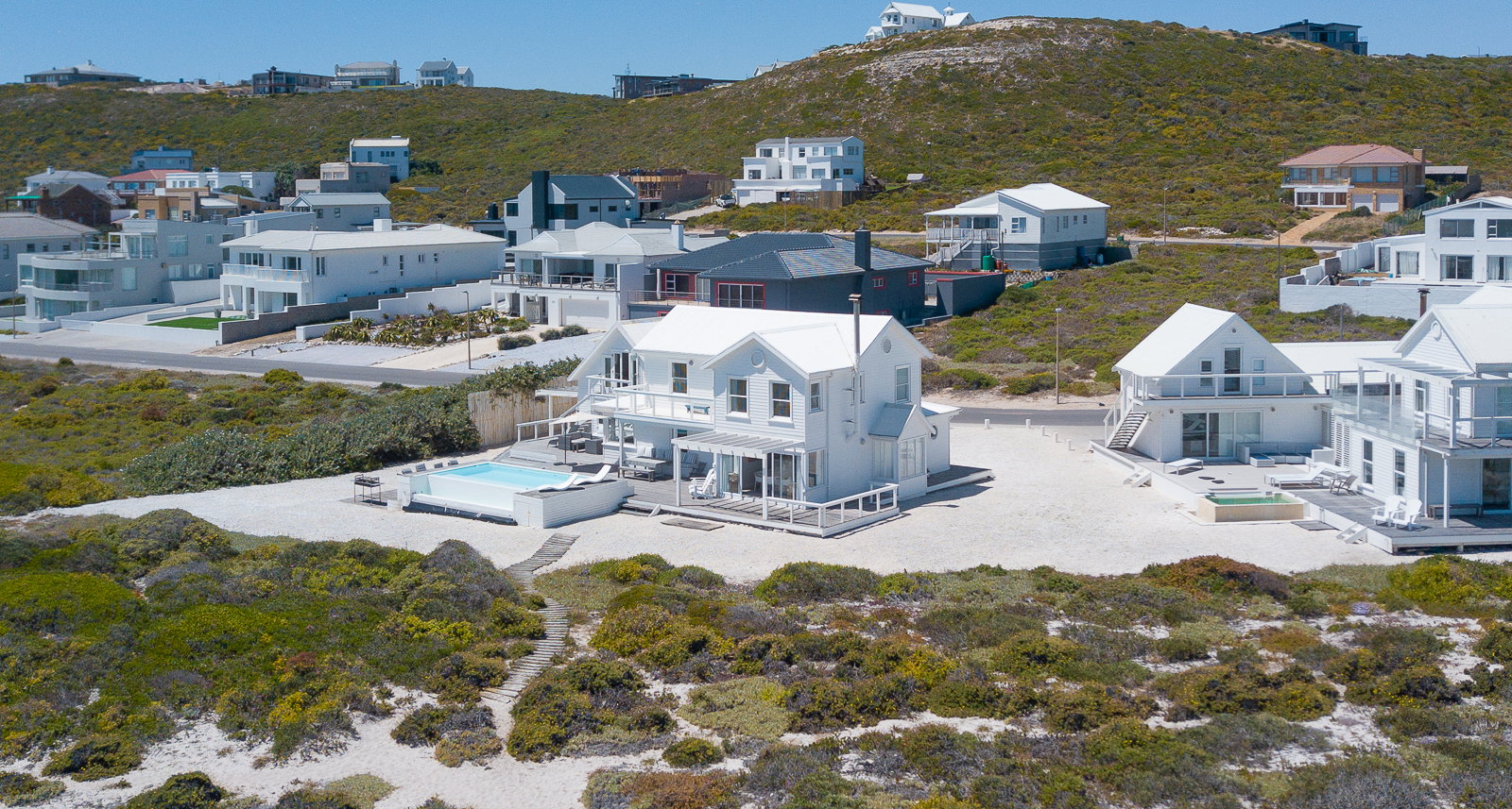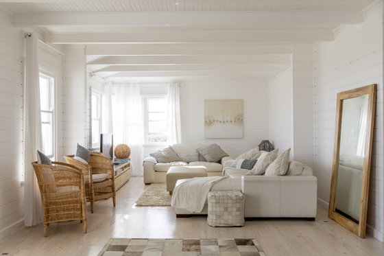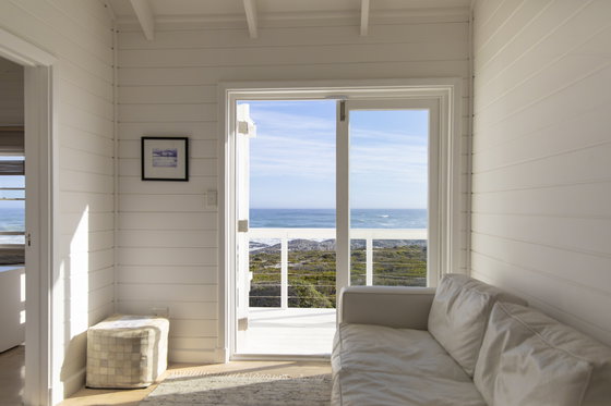 A gorgeous white wooden beach house, blending in blissfully with Yzerfontein's white sandy beaches. The crystal clear infinity pool on the deck accompanied by loungers offers the perfect retreat from reality.