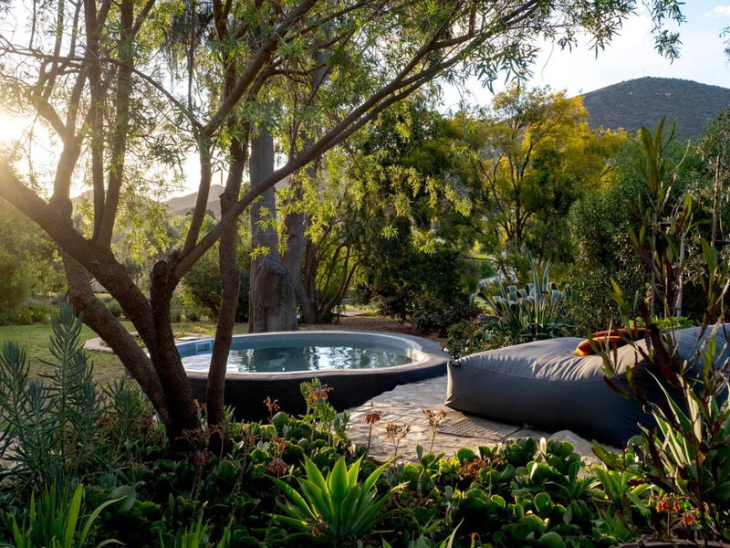 Outdoors, guests can unwind in a private garden with views of the surrounding mountains, enjoy al fresco meals on the patio, make use of the braai facilities or cool off in the plunge pool. The setting is ideal for slowing down after days spent exploring nearby villages, wine routes, nature reserves, cycling routes and hiking trails through the Karoo landscape