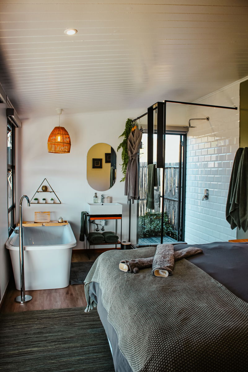 Sunbird Cabin was thoughtfully designed and tastefully furnished to ensure maximum comfort. It is fully self-catering and has a double bed, shower, and bath with an additional shower outside, a hot tub, and a hammock.