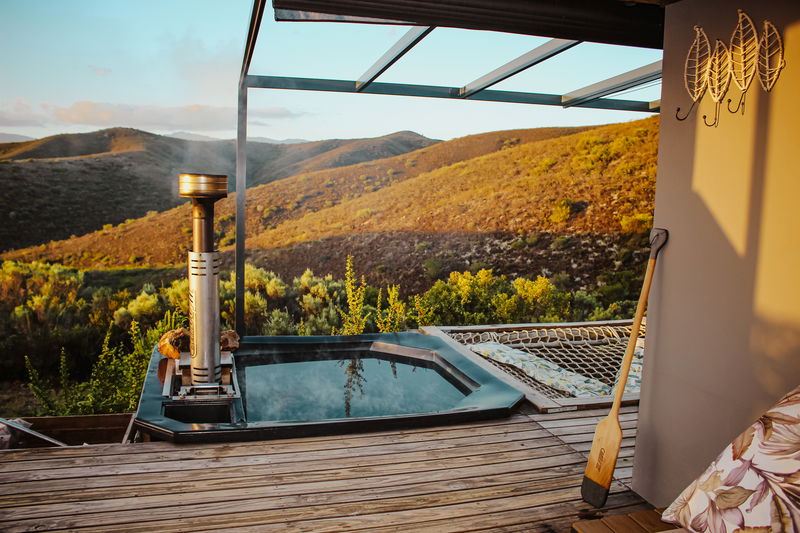Tucked away from the hustle and bustle, this mountain escape is the perfect place to catch magnificent sunrises and sunsets, stargaze in the wood fired hot tub all while you let yourself relax and recharge. If cycling is for you, enjoy km's of beautiful tracks for you to explore. The cabin is only 30 min away from Swelllendam if guests need to head to town to do some shopping.