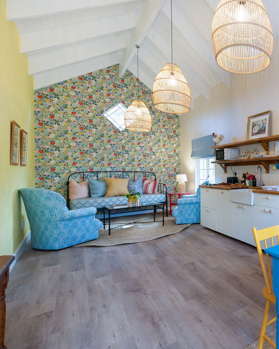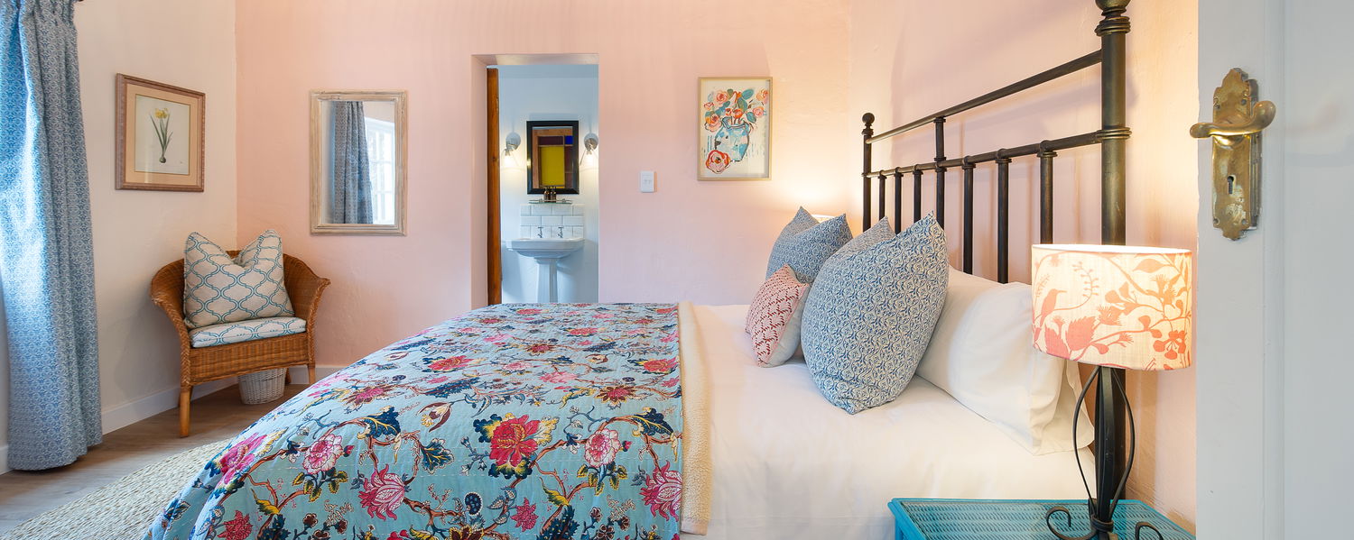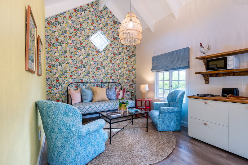 Bramley Cottage is a charming retreat tucked away in the orchards, offering peaceful privacy and sweeping views of Cheverells Farm. Thoughtfully decorated with soft tones and natural textures, this open-plan cottage features a cosy lounge with a fireplace, ideal for cooler evenings. It’s the perfect space to unwind, whether you’re sipping your morning coffee on the stoep or enjoying a sunset braai surrounded by nature.