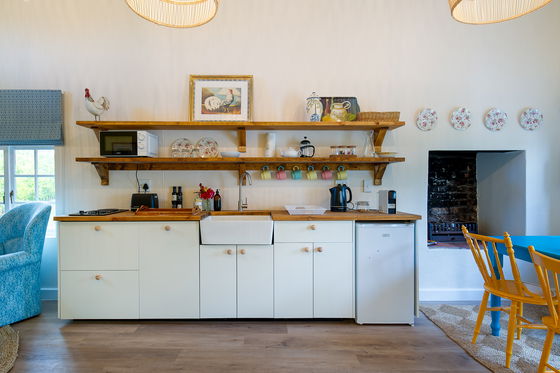Bramley Cottage has a well equipped kitchen including a microwave and stove-top (no oven). The cottage-style bathroom is fitted with heated towel rails, a shower, basin and toilet with towels included.
