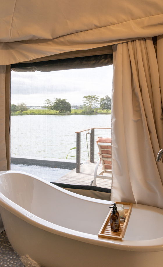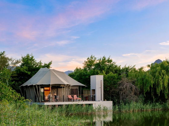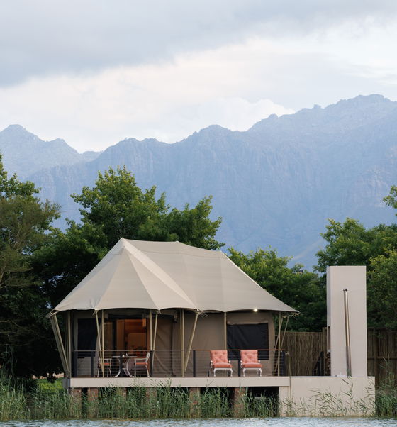 Large windows and open spaces fill the tent with natural light, creating a seamless connection with the stunning surroundings. Wake up to breathtaking lake views, unwind on your private deck, and immerse yourself in the peace and tranquillity of the Cape Winelands.
