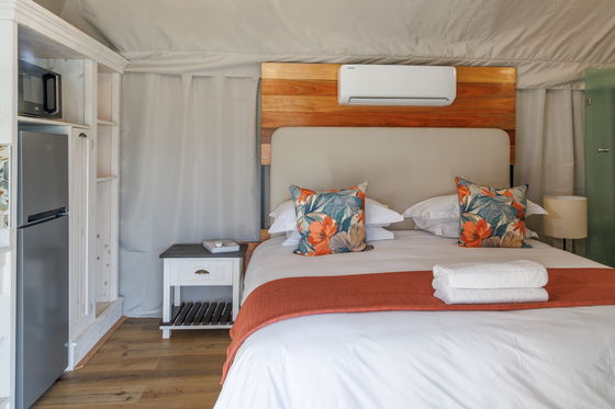 Designed for comfort and relaxation, the Chardonnay tent offers a warm and inviting escape in the heart of nature. Featuring a plush super king bed, tasteful decor, and essential amenities, this thoughtfully curated space ensures a restful and rejuvenating stay.