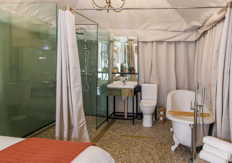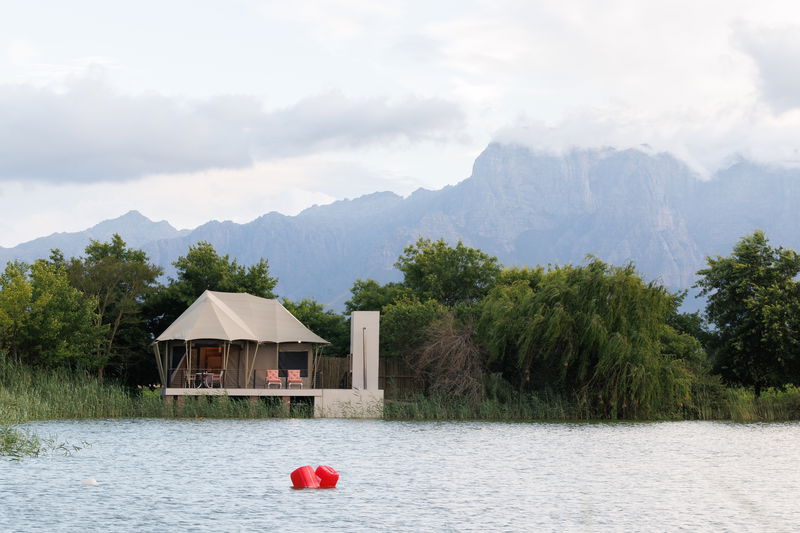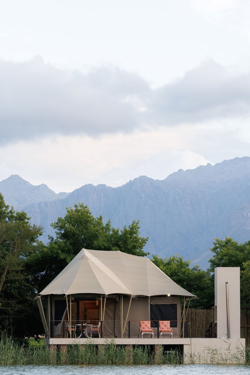 Large windows and open spaces fill the tent with natural light, creating a seamless connection with the stunning surroundings. Wake up to breathtaking lake views, unwind on your private deck, and immerse yourself in the peace and tranquillity of the Cape Winelands.