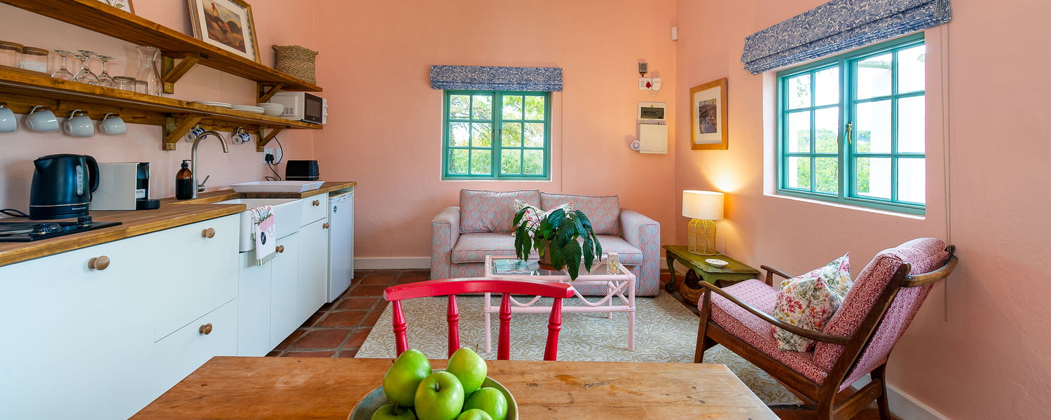 Cripps Cottage is a romantic nook named after one of the most loved apple varieties, ideal for a couple’s getaway. This open-plan space is filled with gentle light, simple comforts, and country charm. The elegant touches – from high-thread-count linen to farm-style rusks – make staying in as delightful as exploring the scenic surroundings. A quiet spot to relax, reconnect, and take in the rhythm of orchard life.