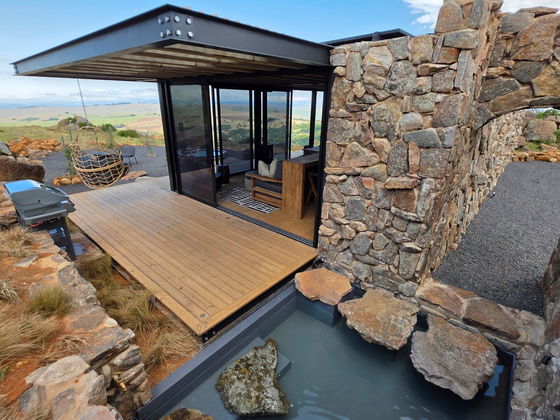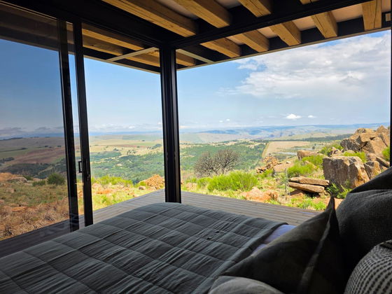The cabin is situated on Beumont farm, hidden amid the Steenkampberg mountain range at 7000 feet above sea level, approximately 15 km from Dullstroom in Mpumalanga adjacent Walkersons Private Estate.