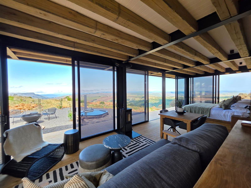 The cabin is situated on Beumont farm, hidden amid the Steenkampberg mountain range at 7000 feet above sea level, approximately 15 km from Dullstroom in Mpumalanga adjacent Walkersons Private Estate.