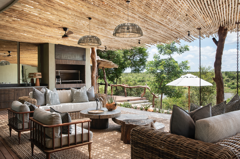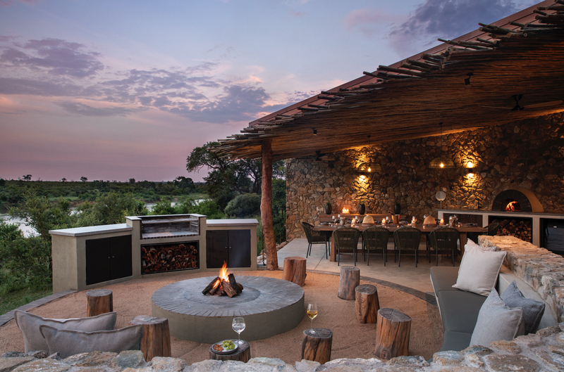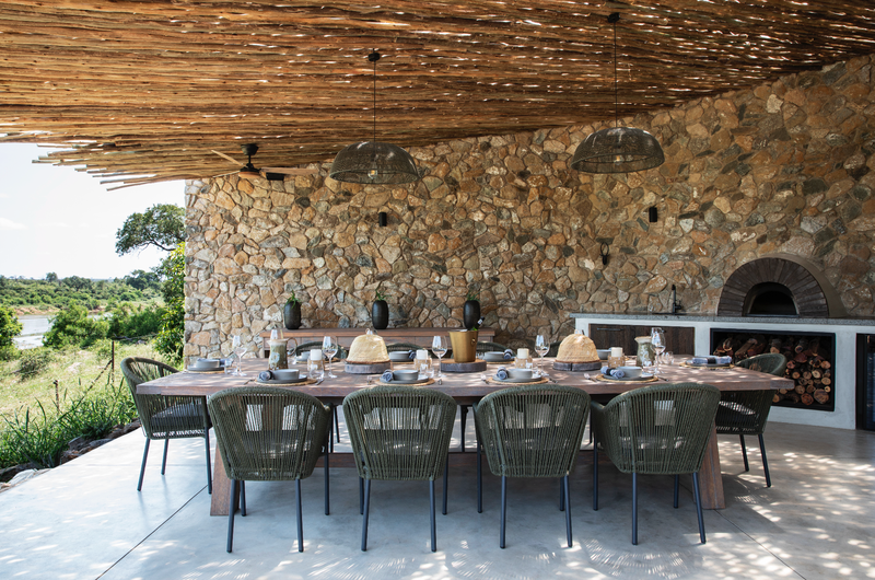 The outdoor dining area at the Boma is an excellent evening dining option for enjoying a braai or a pizza from the pizza oven. At the Indlulamithi Bar you can enjoy the sunset and sundowners with stunning views of the Crocodile River and the Kruger National Park beyond, while protected from the heat of the late afternoon. The bar is also equipped for watching televised sporting events. The solar-powered lodge also has an indoor dining area, and a high-end chef’s kitchen with a dishwasher and a pizza oven.