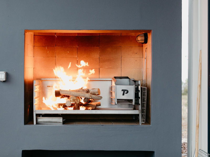 Galileo Eco Pod opens onto a patio with an outdoor dining area, braai facilities, a potjiekos pot and a pizza oven. Each pod features a private sunken wood-fired hot tub.