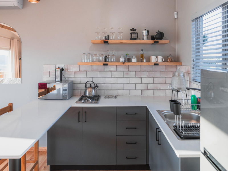 The kitchen is fully equipped for a comfortable self-catering stay (microwave, gas stove, fridge & kettle), to compliment your culinary endeavours, outside you will find a covered built-in braai and a pizza oven.