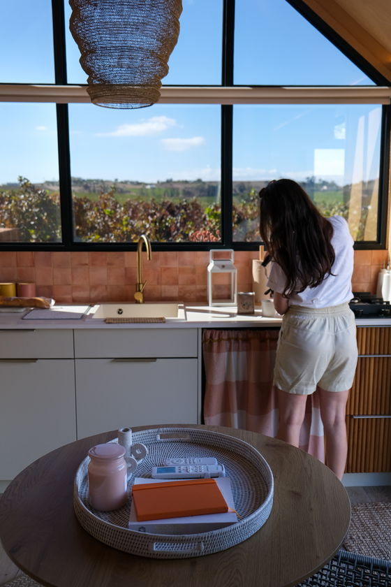 A modern cabin located on a historic farm in the picturesque Devon Valley – a coveted countryside setting between Stellenbosch and Cape Town. Here, amidst vineyard-clad slopes and majestic mountain ranges you will find a true sanctuary where you can just be – a home from home.