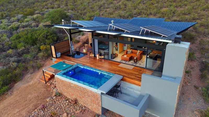 Olea Eco Stay is situated on the Renosterbos Private Nature Reserve where accommodation offers a secluded, modern, and luxurious escape nestled deep within the heart of pristine Renosterveld vegetation. Surrounded by untouched wilderness, guests are immersed in a tranquil world of natural beauty, where wildlife roams freely and vibrant flora changes with the seasons.