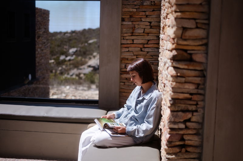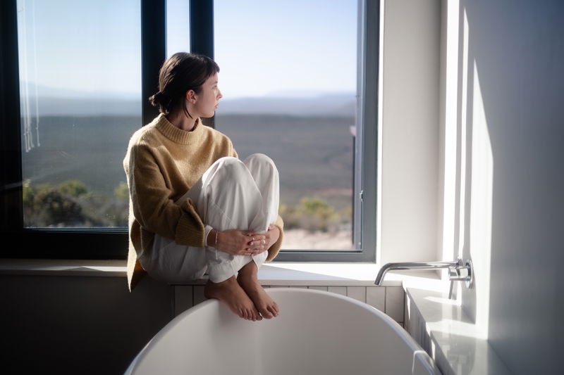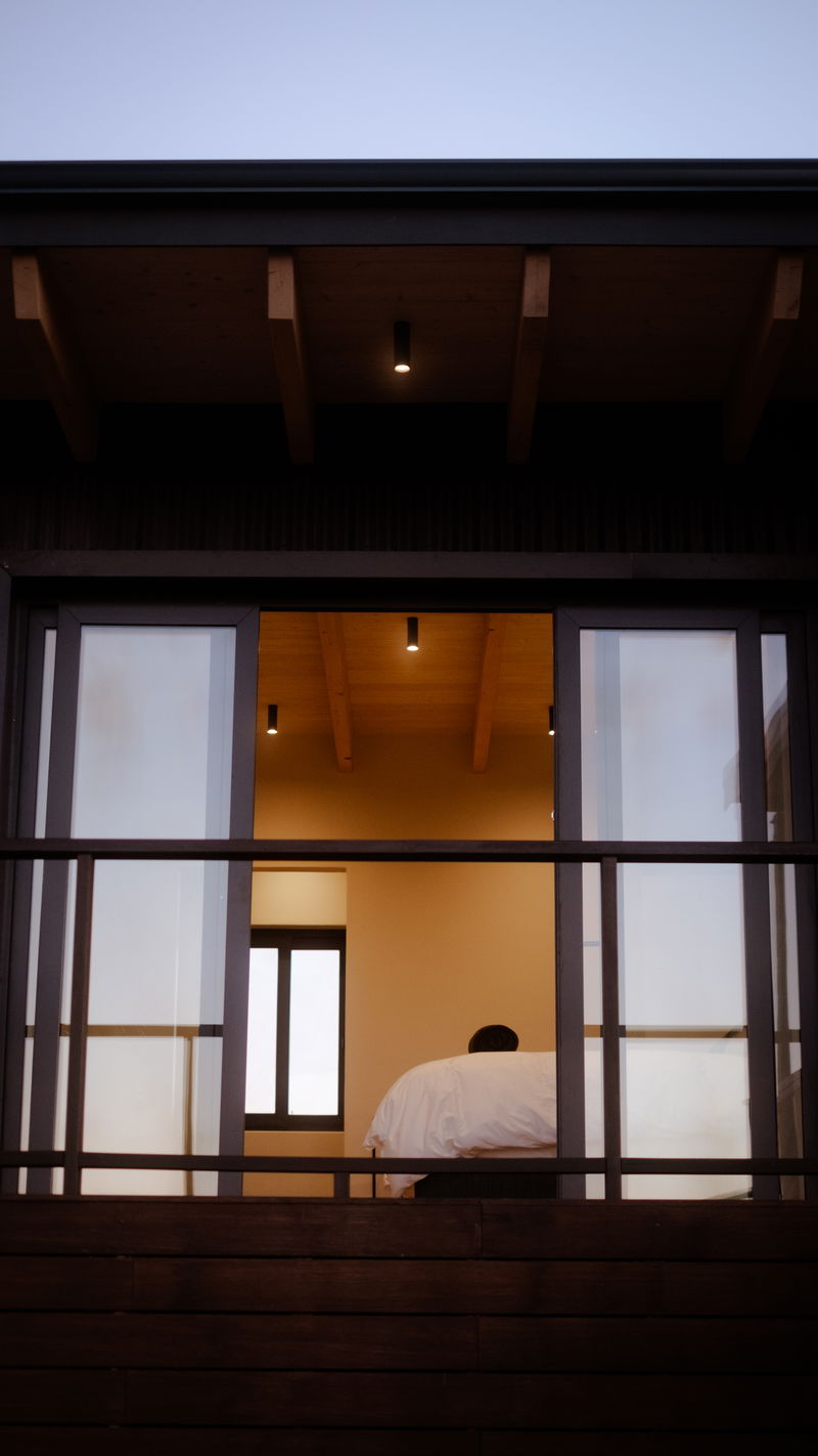 Two large windows on the eastern and western sides frame the surrounding mountains, keeping the views close from morning to evening.