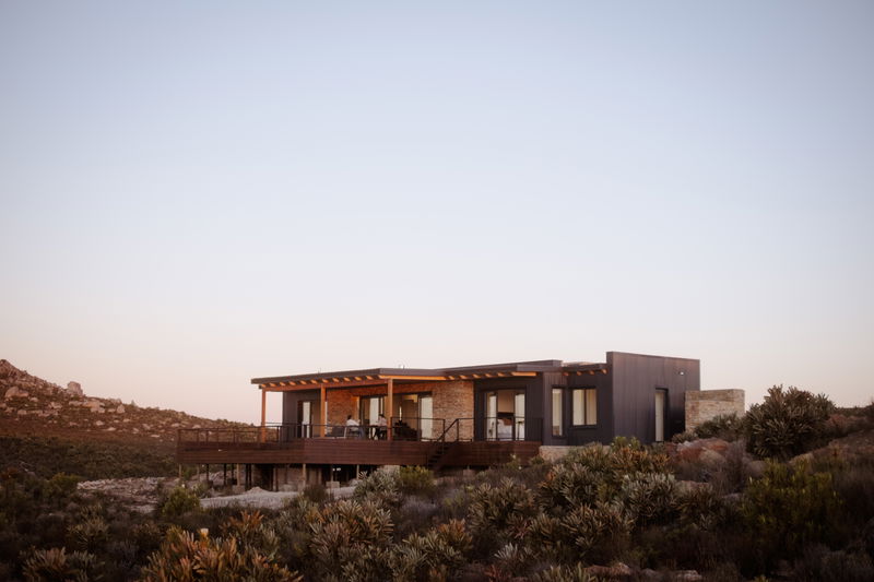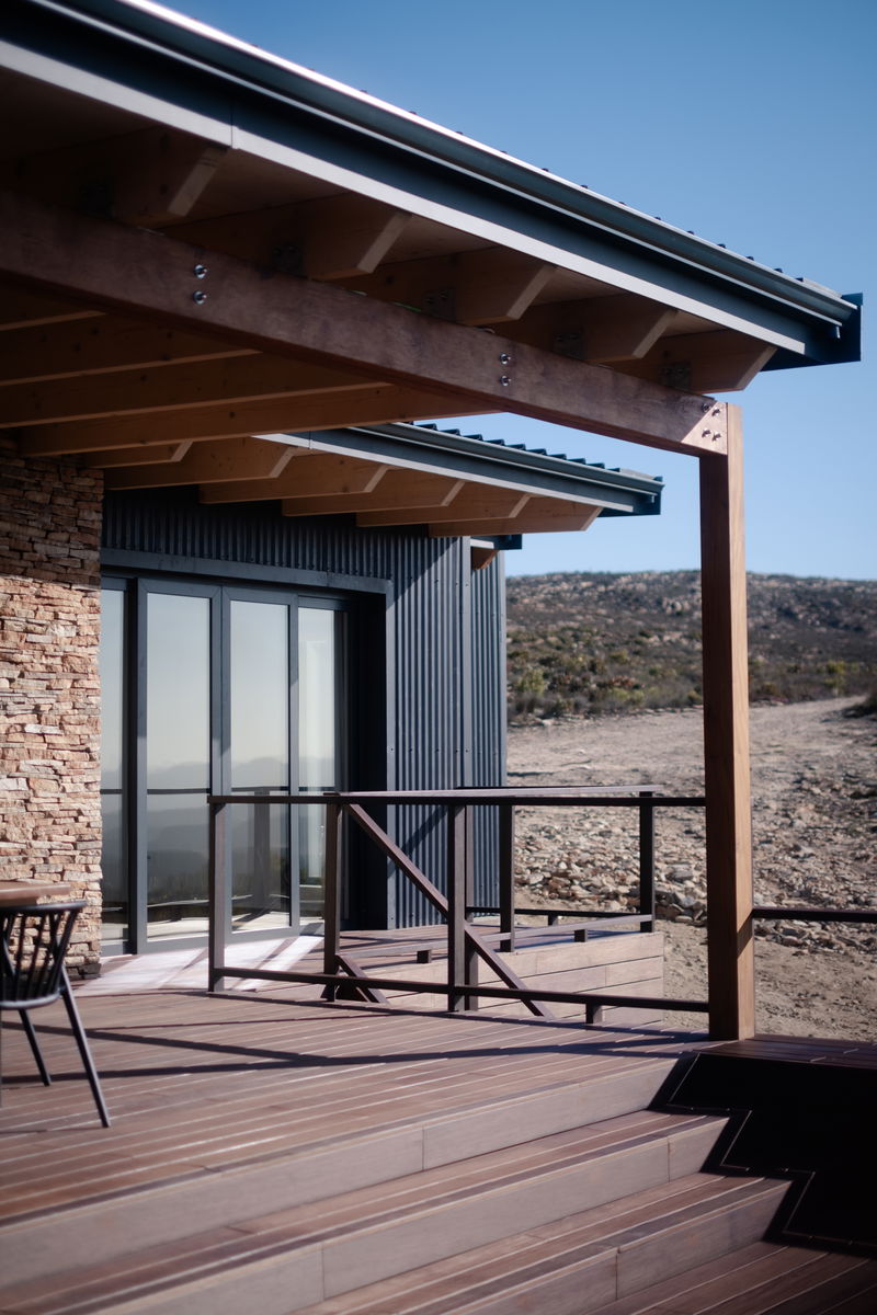 Restio Cabin is a newly built mountain retreat on Riemblaar Karoo Reserve in the Western Cape. The cabin is north facing with breathtaking views towards the Anysberg and the Matroosberg, which is often covered in snow during winter months.