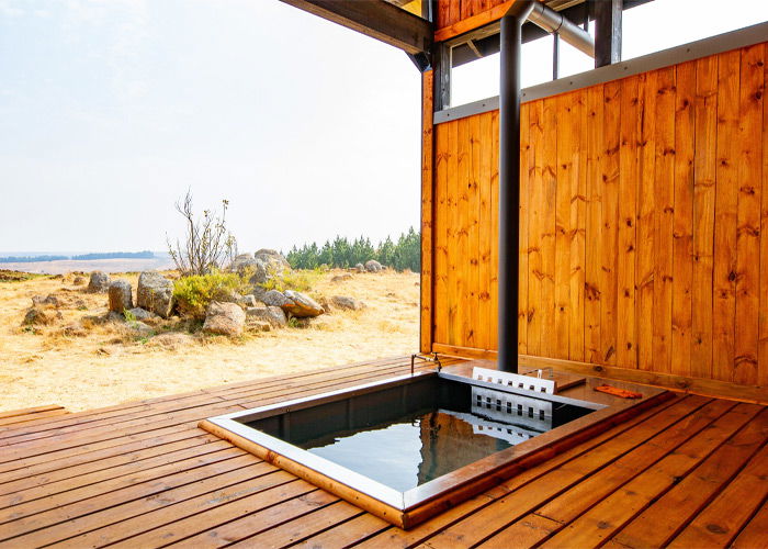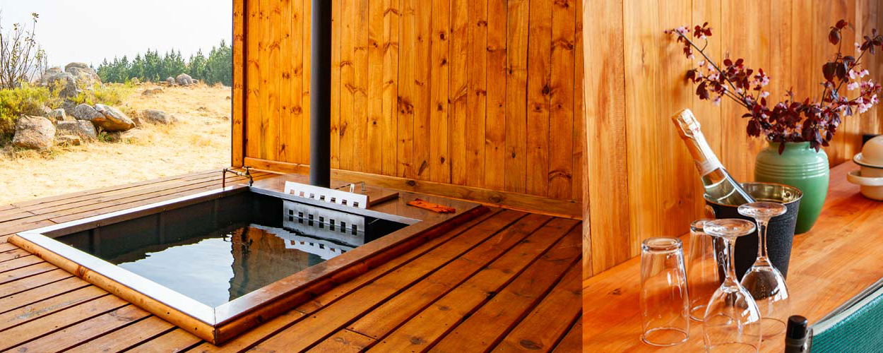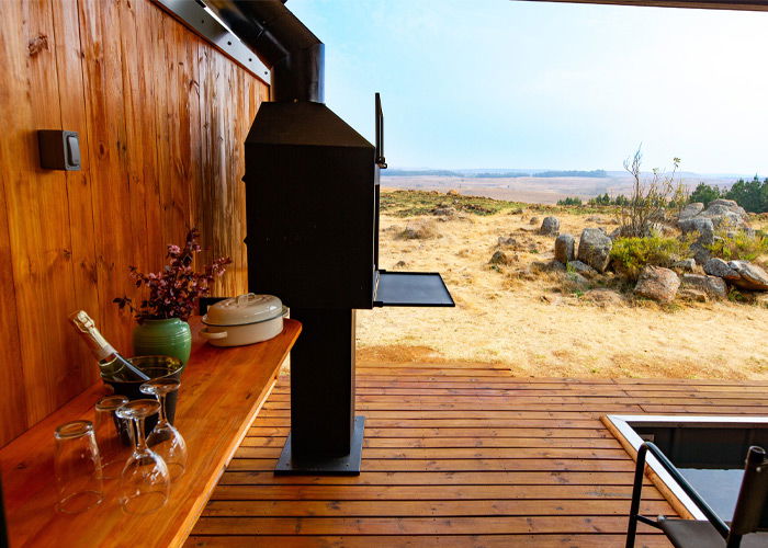 Unique accommodation in Dullstroom set parallel to the water, only a short walk from the dams. Fly fishing, picnics, and peaceful water activities are always close at hand. Waterside Cabin One boasts a patio with a splash pool that doubles as a wood fired hot tub with beautiful year-round sunset views, making every visit unforgettable.