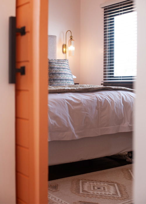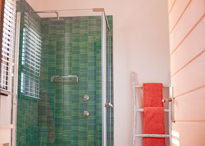 The queen-sized bed and private bathroom complete the cabin with an upmarket and inviting atmosphere.The bathroom features a shower with a clean, modern finish. In combination, the bedroom and bathroom provide a private and comfortable setting where guests can unwind with ease.