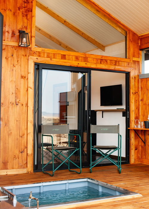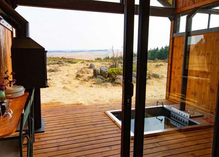 Unique accommodation in Dullstroom set parallel to the water, only a short walk from the dams. Fly fishing, picnics, and peaceful water activities are always close at hand. Waterside Cabin Two boasts a patio with a splash pool that doubles as a wood fired hot tub with beautiful year-round sunset views, making every visit unforgettable.